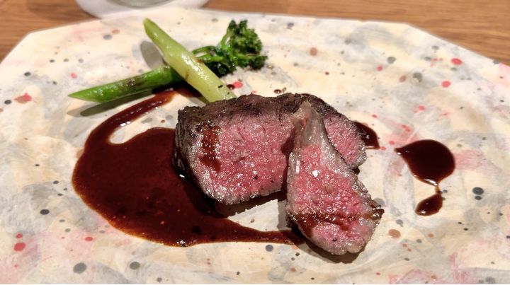 A5ランクを獲得した石垣産の”新里牛”を使用したステーキは、噛むほどにお肉の旨みが感じられる逸品♡ そのほかにもサーモンを使用したお料理やパエリアもおいしかったです。