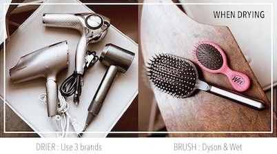 「ドライヤーでかなり髪質が変わります。いつも以上にツヤを出したいときはパナソニック ビューティ、ボリュームアップしたいときはリファ、とにかく早く乾かしたいときはダイソン。毛先より根元を重視して乾かす。熱ダメージ防止にオイルを塗布し、根元に風があたるよう髪を振りながら乾燥。こうして生えグセを抑制。ドライヤーを近づけすぎるのは傷みの原因になるのでNGです」(Shucoさん・毛髪診断士)