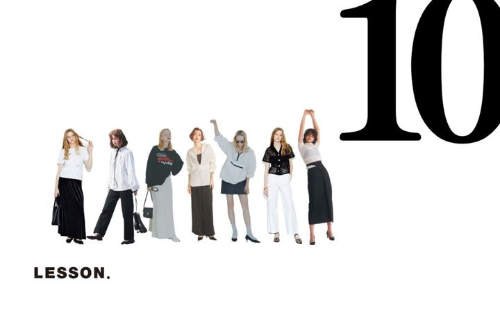 抜けを生む白はベーシックのまま、冷静さを保てる黒で目新しさを。落ち着く2色が地味に転んでしまわないよう、素材の質感やシルエットで差をつけることで、トータルバランスがよくまとまる組み合わせの考え方。