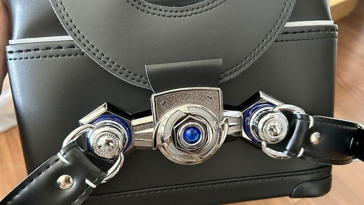 かぶせ部分(ふた)をくるっと簡単に開け閉めできる錠前に戦隊ものの変身バッジのようなオリジナルのデザインが施されていて、「かっこいい!」と特に男の子が喜びそうなビジュアルです。