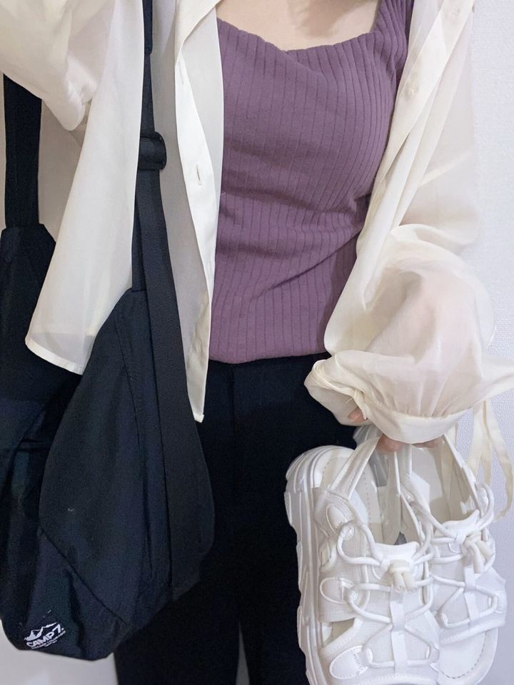 夏のイベントや暑い日にサラッと1枚で着用しやすく大活躍でした。 秋冬にもインナーとして活躍確定! <商品情報> 商品名:【GU】ブラフィールスクエアネックタンクトップ サイズ:S カラー:black 品番:351516 価格:¥1,290(税込)