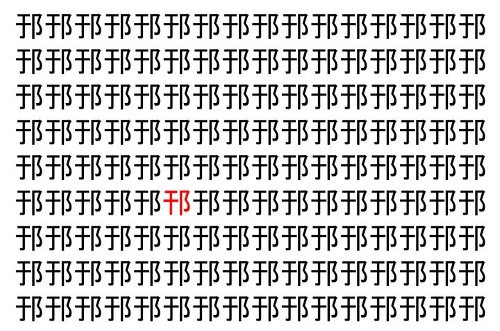 画像の中には、「邘」という漢字が縦に9行、横に16個並んでいます。 全部で144個となりますが・・・、そのうち1つは「異なる漢字」となってますよ!!