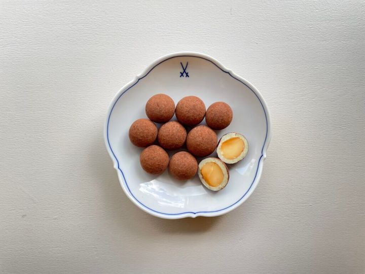 今回お届けするのはマカダミアナッツ。1粒が結構大きい。小さな口の人はとくに大きく口を開けて、ぽいっといきましょう。マカダミアナッツをホワイトチョコでくるみ、ココアパウダーで仕上げたものだ。カリッと嚙むと、ふわっとバニラのいい香りのチョコとナッツの香ばしさ、心地よい食感、そして、ほのかな塩味が相まって、次の1個につい手が伸びる。ちょっと危険。あっという間に1缶食べてしまいそうだもの。