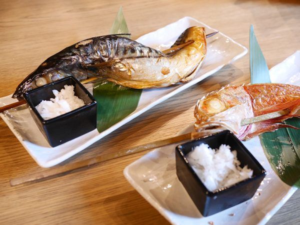 燻銀の看板メニューは、なんといっても「鮮魚一本焼き」。 生の魚を一夜干しにして旨味を凝縮させた魚に串を差し、パリッと焼いた一品です。 なかでも一番人気の「大トロさばの一本焼き」は、皮のパリパリと身のふっくら加減が絶妙!