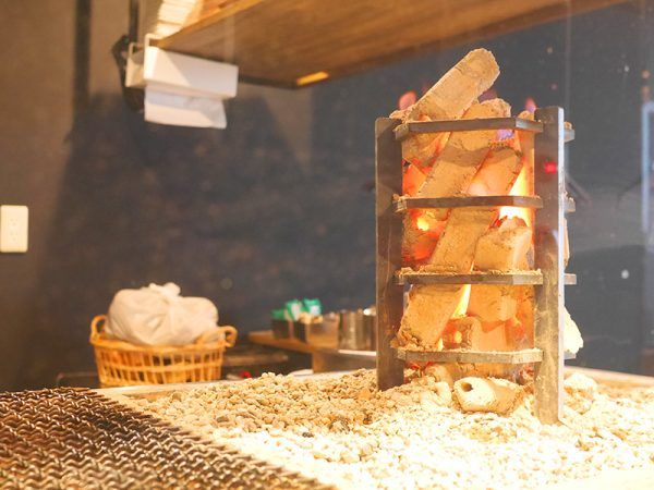美味しさの秘密は、この炭火。 魚も野菜も、直火でなくこの炭火の周りで焼くため、素材の旨味が存分に味わえる仕上がりになるのです。