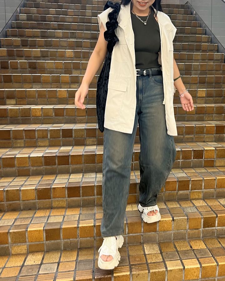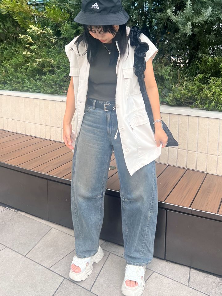 夏の装いの中にカーキのタンクトップを入れることで、白や黒を持ってくるよりも秋っぽさが出ます。 さらにベロア素材のバッグを持つことで、気温が高い日でもできる「夏秋コーデ」に仕上げました。 バレルレッグジーンズもベロアバッグも、とてもおすすめなので店頭でチェックしてみてください♡ <商品情報> 商品名:バレルレッグジーンズ サイズ:M カラー:67 BLUE 品番:352152 価格:¥2,990(税込) <商品情報> 商品名:ベロアフリルハンドルバッグ カラー:09 BLACK 品番:351406 価格:¥2,290(税込) <writer> momo*(@_momo__kl_gram) モノトーンコーデ好きな30代ママ 骨格ウェーブ/160㎝/イエベ秋 ※価格変更や、販売終了の可能性もございます。最新の商品情報は各お店にご確認くださいませ。 ※記事内の情報は執筆時のものになります。