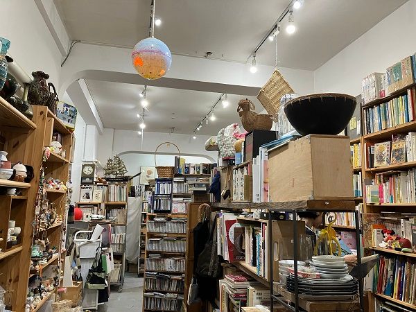 お店の愛称は、〝ザックバランな古本屋〟。元々は本と、本に付随した付録のみを買い取っていたそうですが、「持ち込まれたものはすべて引き受けたい」という姉弟の考えのもと、今では新旧問わず、幅広いジャンルの古本と雑貨などがズラリ。まるで“おもちゃ箱”をひっくり返したような店内に。取材しながらもくぎづけです。