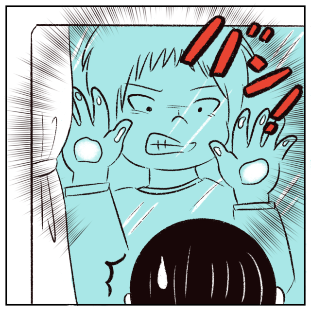 ドアを閉めるとさなかちゃんがドアを強く「バンッ」と叩きました。