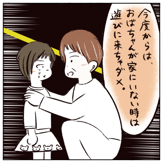 「今度からは、おばちゃんが家にいない時は遊びに来ちゃダメ。」ときっぱりと伝えました。