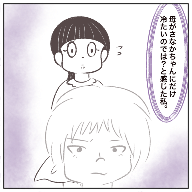 「母がさなかちゃんにだけ冷たいのでは?」と感じたまるさん。
