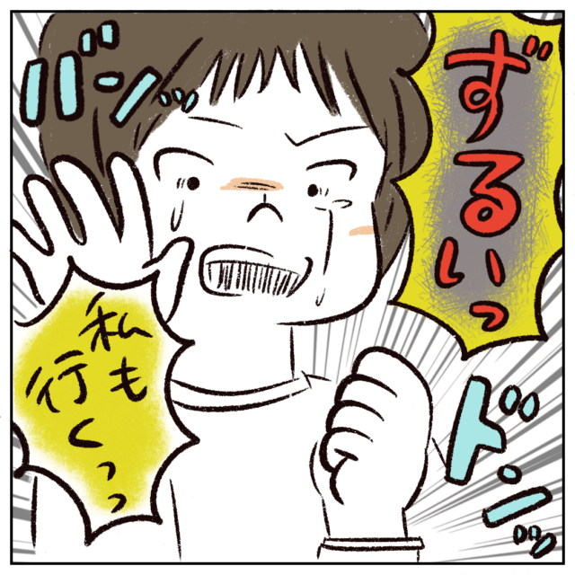 そして「ずるい!!私も行くっ」と泣き叫びながらドアを叩きます。