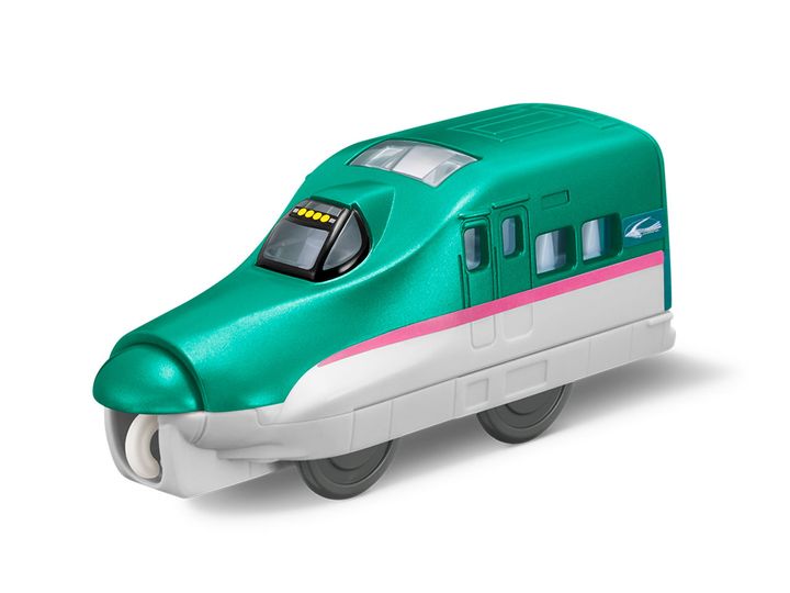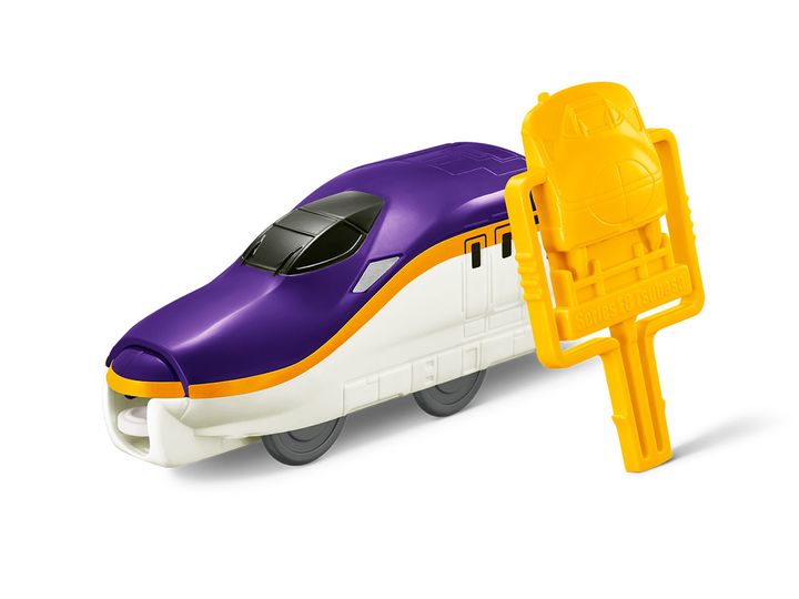 手転がしで遊ぶことができ、複数集めればほかの車両と連結して遊べることはそのままに、今回は全車両に楽しい仕掛け(ギミック)が搭載されました。鍵のギミックで走る「E8系新幹線つばさ」や、窓から中をのぞくとキャラクターが見えたり、屋根を開けると運転席を観察できたりする車両は、図形や空間などの認識を高めます。また、車両が働く姿を想像し、いろいろな車両が協力する様子を考えることで社会性を育みます。