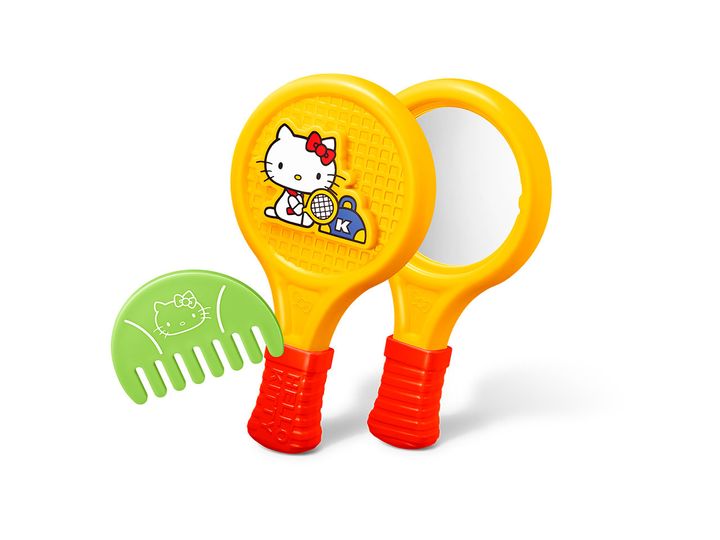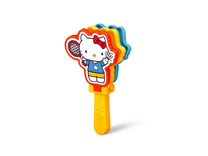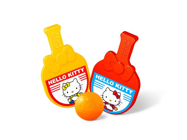 「ハローキティ」デザインのスポーツをテーマにしたかわいらしいおもちゃ全8種類とひみつのおもちゃ1種です。第1弾は卓上で遊べるスポーツゲーム、第2弾はスポーツ観戦などで使える応援グッズが登場します。細部にハローキティが隠れており、絵柄はデビュー当初のレトロなデザインのハローキティをモチーフにしています。