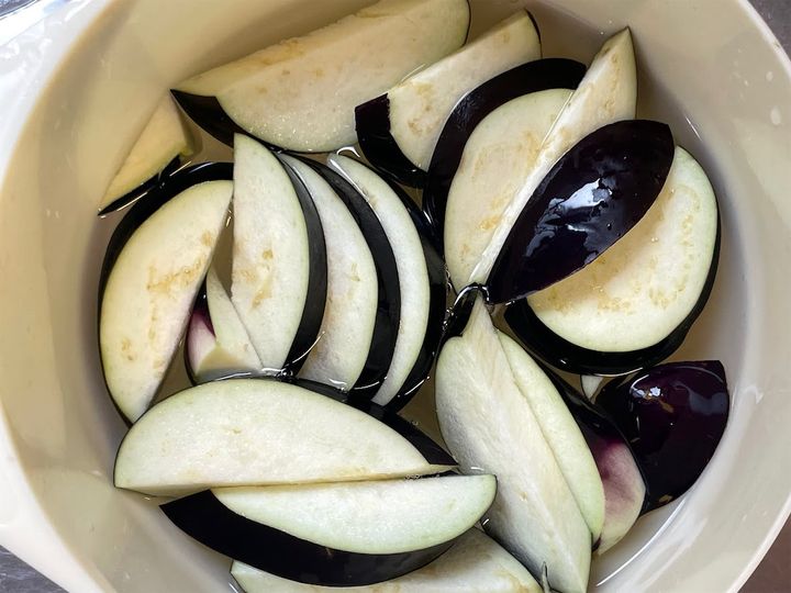 一晩漬けたことでなすはしっとりとしていて、二回りほど小さくなっていました。
