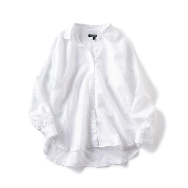 太陽の似合う清潔感を醸し出す、リネン素材の白シャツはONにもOFFにも大活躍。白リネンシャツ¥9,167(バナナ・リパブリック)