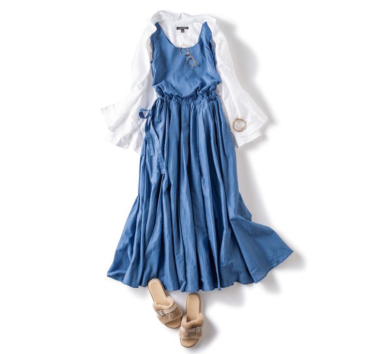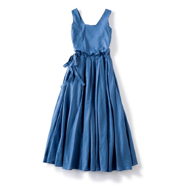 ワンピースブームの今年はマスト!涼しげなブルーで清涼感をまとって。ワンピース¥32,000(アッパーハイツ/ゲストリスト)
