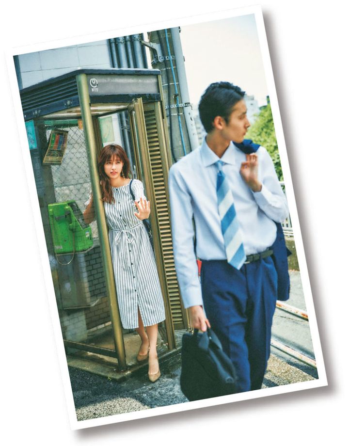 バッグ¥53,000(ケイト・スペード ニューヨーク/ケイト・スペード)パンプス¥46,000(ルチェンティ/ゲストリスト)ピアス¥17,100(ガス ビジュー/ガスビジュー 青山)バングル[2本セット]¥4,500(アビステ)【男性】スーツ¥53,000シャツ¥14,000ネクタイ¥7,300〈マーノ・ガーメントコンプレックス〉ベルト¥18,000〈アンダーソンズ 〉(すべてマーノ・ガーメントコンプレックスKITTE丸の内店)バッグ¥10,000(コムサイズム/ファイブフォックス カスタマーサービス)