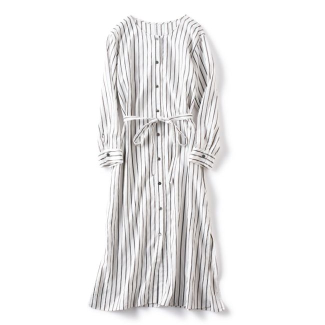 1枚ではもちろん、羽織ったり、レイヤードしたりと大活躍。ストライプシャツワンピース[共布ベルト付き]¥23,000(ラ・エフ)