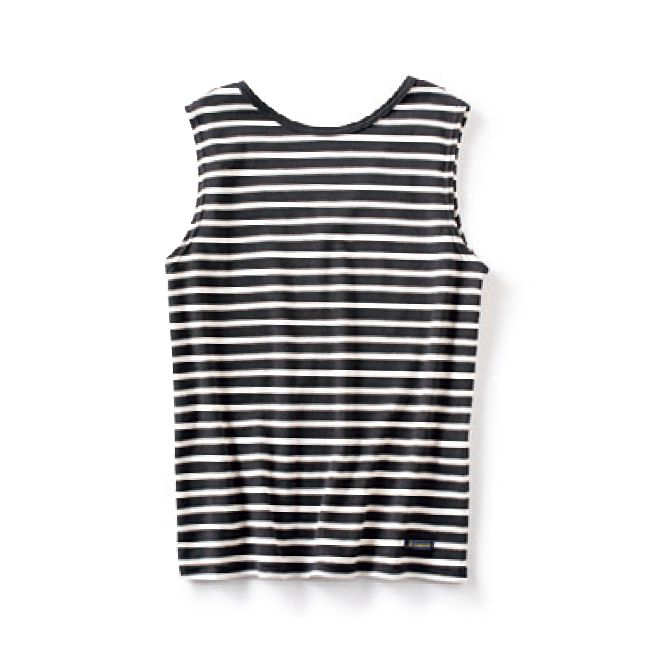 1枚あるとコーディネートに奥行きが出る、ボーダー柄のタンクトップ。ボーダータンクトップ¥10,000(ルミノア/ゲストリスト)