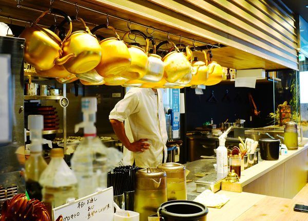 カウンター席の上にずらりと並んでいるやかん。こちらは、「おかわりヤキャンタ」(1,099円) 1杯目は、まず単品のドリンクで。おかわりをやかんで注文すれば、「おかわりヤキャンタ」は約4杯分はいっていますので、 お得!みんなでシェアしてもいいですね。