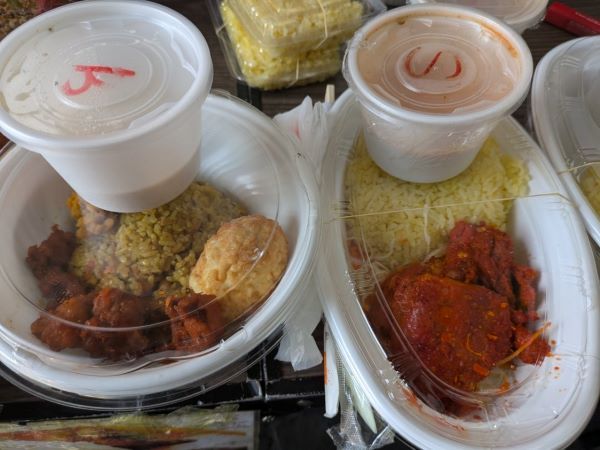 カップに入ったカレーは、食べる時にご飯にかけていただくことができます。左はビリヤニ、右はタンドリーチキン。