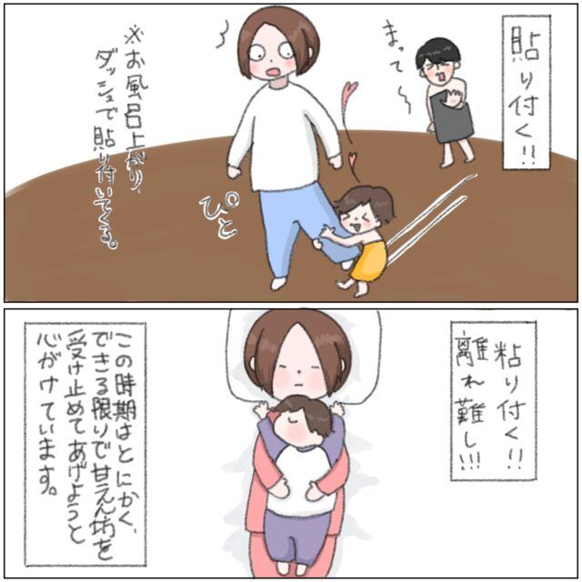 べったり甘えらるのはちょっと大変なときもありますが、可愛くて嬉しい気持ちもありますね。甘えを受け止めることでイヤイヤが少し落ち着きそうですね。