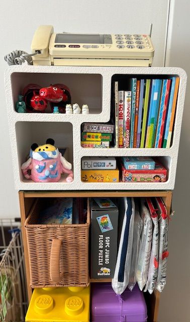 我が家では、固定電話を子供のものを入れている棚の上に置いているのですが