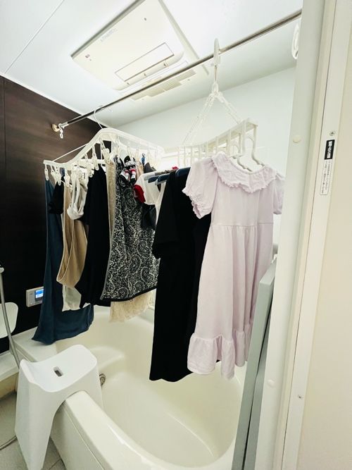 以前はベランダに干していましたが、『花粉が付いて鼻がムズムズするから室内干しにして欲しい』という家族の要望で浴室乾燥となりました。