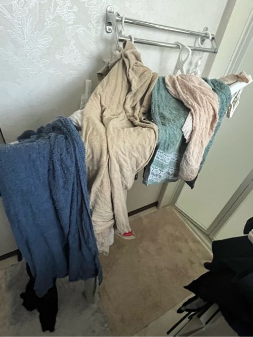 特におすすめなのは大物から出し、ざっくり干す辺りのハンガー上に乗せます。