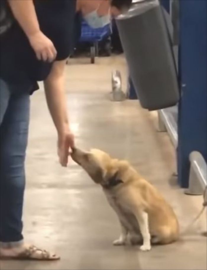買い物客に対して、フレンドリーなアクションを取っているかわいい犬の姿はこちらの動画からご覧いただけます。