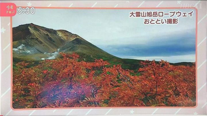 こちらの写真は標高およそ1600メートルの旭岳ロープウェイ姿見駅付近ですが、木々が色づき始めています。