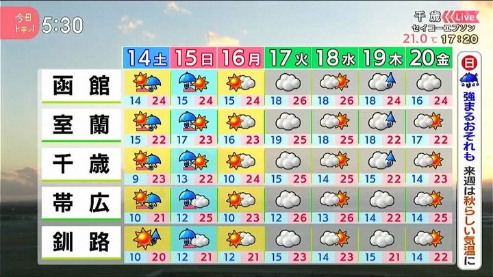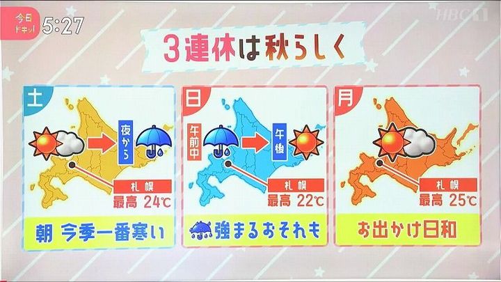 3. 【3連休は秋らしく】北海道の天気予報 日中も涼しくなるので羽織るものを/気象予報士が解説