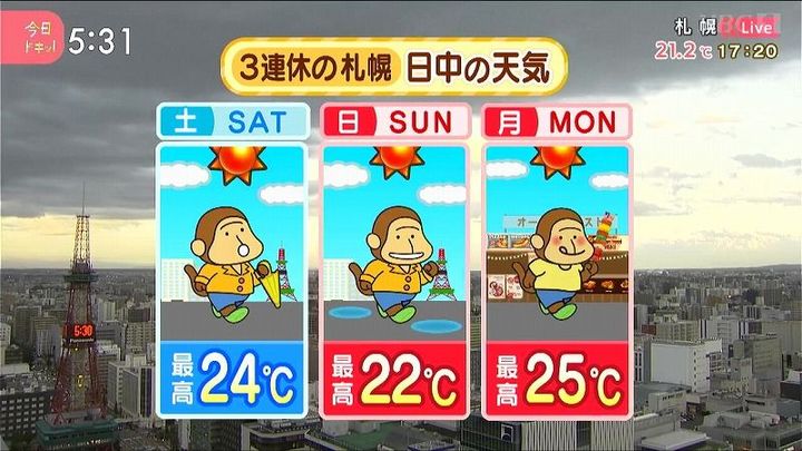 背景は13日午後5時10分ごろの札幌情報カメラ