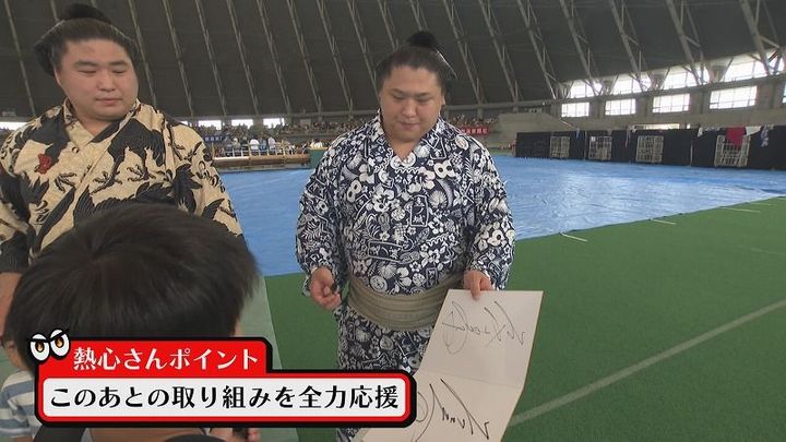実は、番組スタッフが若元春関に海容くんの話をしたところ、快く承諾!