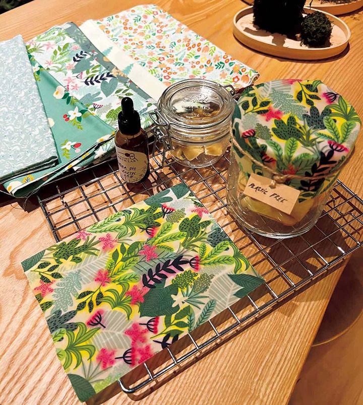 「アースラボ」では、蜜蝋ラップ作りなど、天然由来の材料や廃材を用いた手作り体験ワークショップを毎週無料開催