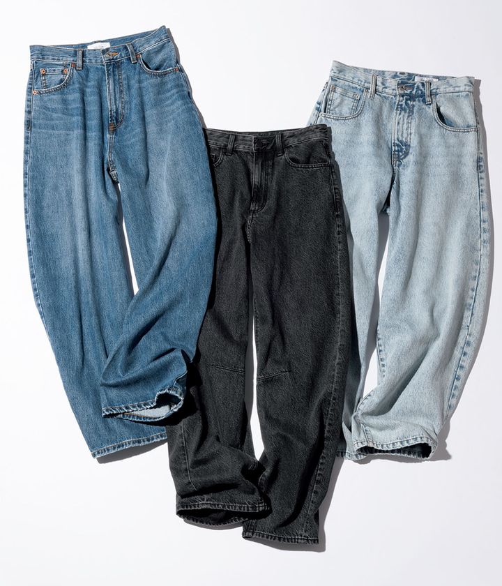 即完売し入手困難な状況が続いたことで人気が加速したGUの新名品。デニムパンツ¥2,990(GU)