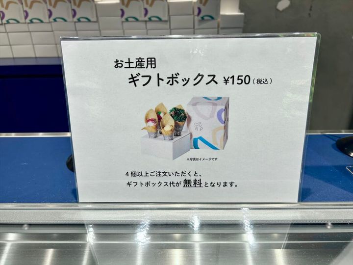 お土産用のギフトボックスは、税込150円で購入可能ですが、商品4個以上の注文で無料になるとのこと。ということで、筆者は今回、4個購入。店員さんに人気商品を聞いて選びました。