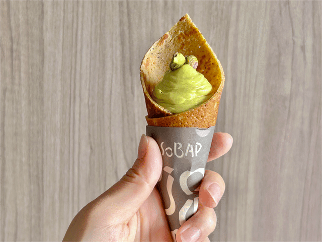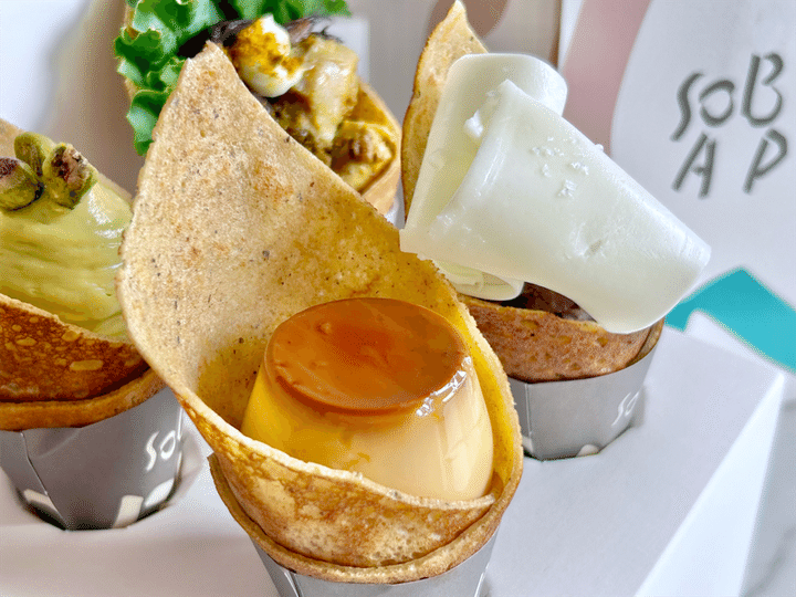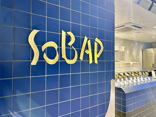 JR東京駅改札内エキナカ商業施設「グランスタ東京」にて、2024年2月にオープンしたそば粉クレープのお店「SOBAP(ソバープ)」。行列のできるドーナッツ店「I'm donut?」や行列のできるパン屋「アマムダコタン」「ダコー」の経営者でありオーナーシェフの平子良太氏を総合プロデューサーとして迎え、新たに誕生したブランドです。