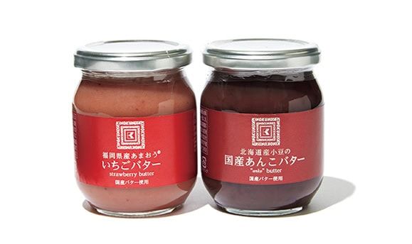 左から:福岡県産 あまおう®いちごバター ¥1,188、北海道産小豆の国産あんこバター ¥1,188