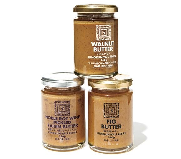 左から:貴腐ワイン漬けレーズンバター ¥929、くるみバター、無花果バター 各¥839