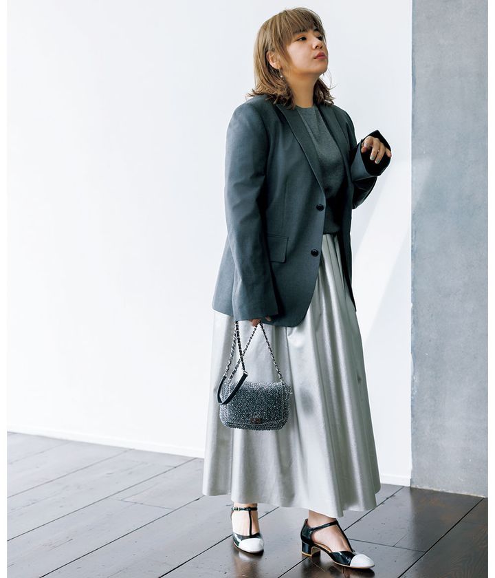 しっかりしたボディラインを活かして着るビッグシルエットが大人。憧れジャケットを軸に大人なグレートーンコーデに挑戦。
