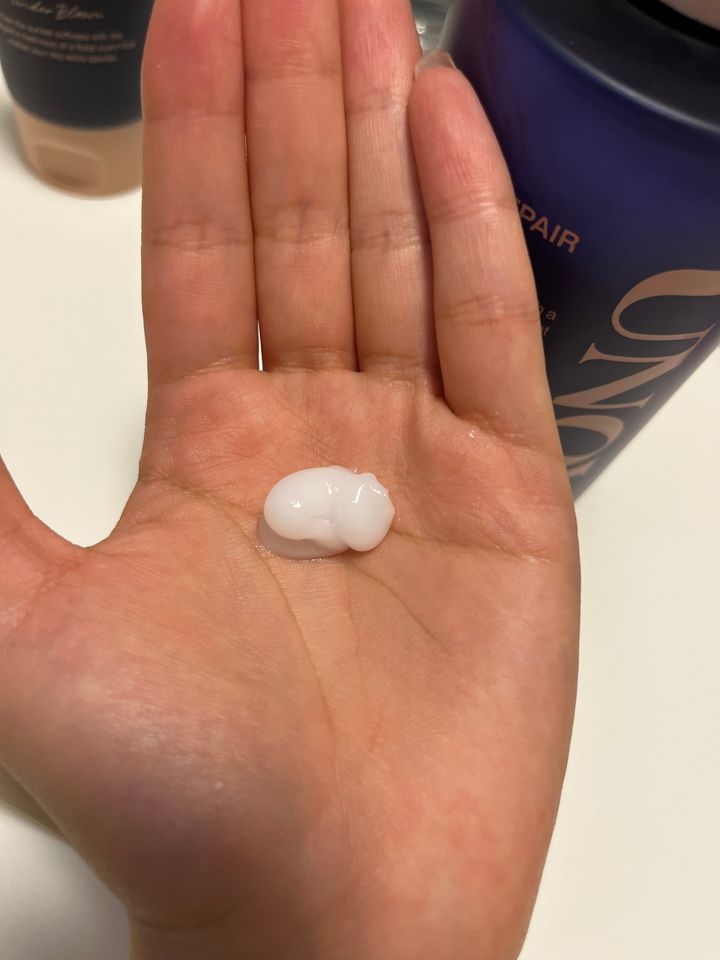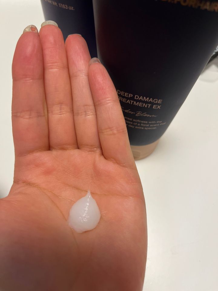 ディープダメージの方は、テクスチャーは重めで、使用感はこちらも指通りがよく、髪にも艶を与え、柔らかい質感に🤍