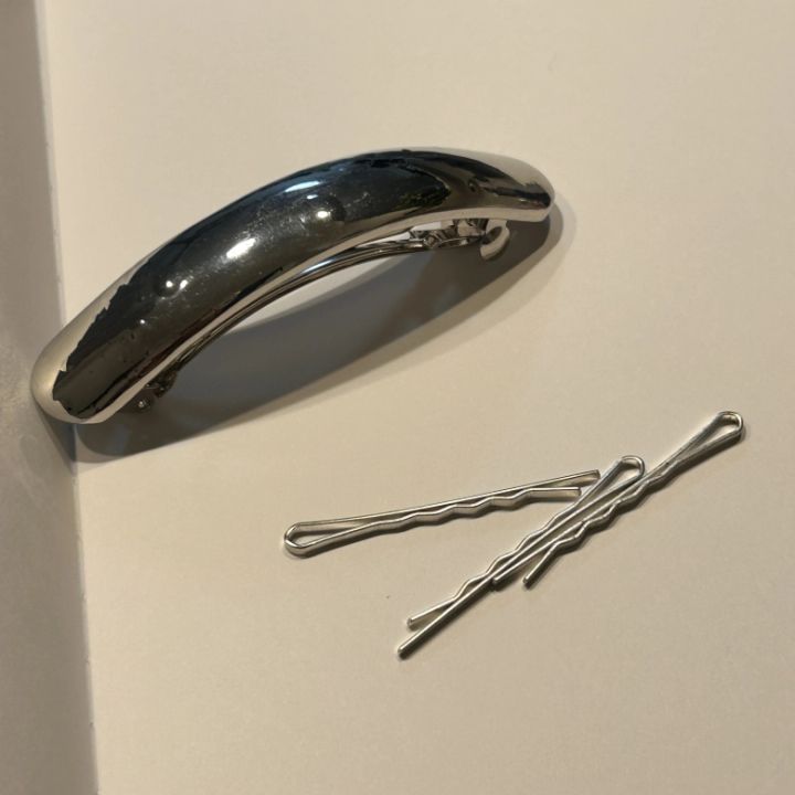 メタルバレッタ 879円/WEGO メタルヘアピン10本セット 222円/SHEIN