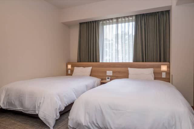 一般的な客室はスタンダードのダブルやツイン、デラックスツインにくわえ、畳敷きの和風ツインルームなどを用意。ビジネスなど1人で長期滞在できるレジデンシャルルームは、荷物を整理するための棚を増やし、大型の冷蔵庫を置いた客室です。ここでは2名で利用できるデラックスツインルームを紹介します。