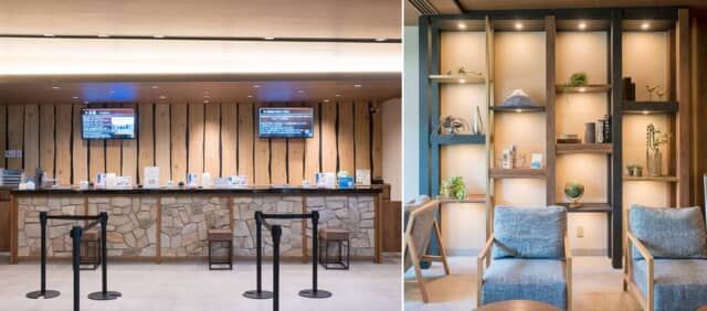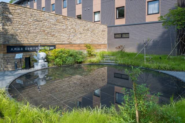 館内のデザインは都市部に多いドーミーインとは違っていて、ロビーやフロントに木材や石などを使ったリゾートホテルを思わせる雰囲気。富士山をかたどった置物なども置かれていて、その土地らしさが感じられます。