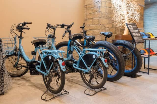 2時間まで無料で借りられるレンタサイクル。2時間以上は1時間につき¥200で、最大5時間まで利用できるので、周辺散策やお買い物に便利です。