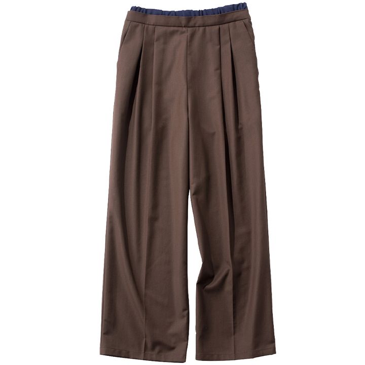 この秋も引き続きトレンドのダブルウエストは秋っぽブラウンが新鮮。