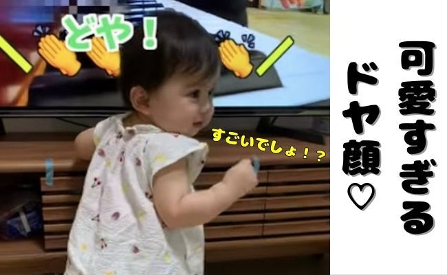振り向きざまに「すごいでしょ?」とドヤ顔の女の子♪ママに披露してくれた可愛らしい姿に注目ですよ♡