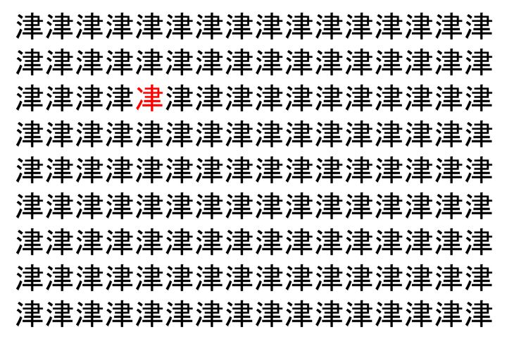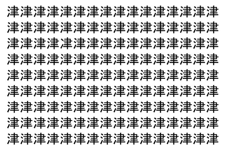 2. 【脳トレ】「津」の中に紛れて1つ違う文字がある!?あなたは何秒で探し出せるかな??【違う文字を探せ!】