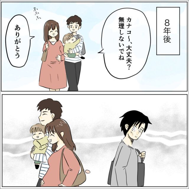 「カナコ~、大丈夫?無理しないでね。」「ありがとう。」上の子を抱っこした夫が、隣で歩く私を気遣いながらほほ笑んでくれます。そう、私は再婚し幸せな家族を築いていたのです。